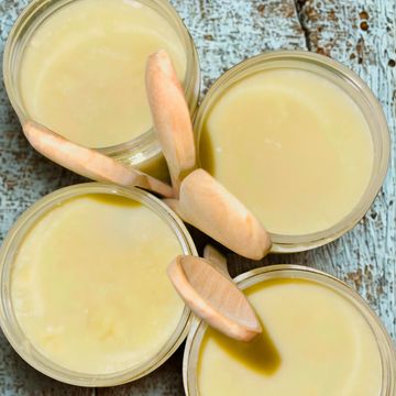DIRECTIONS: Using your fingers, scoop out a little butter and massage onto dry areas of your skin until it dissolves within.